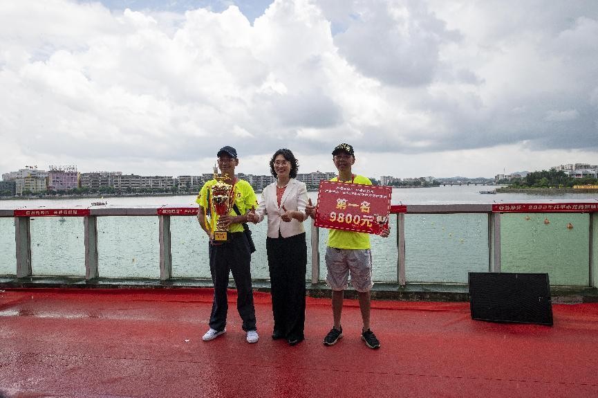 据悉,这是该市自2007年后,时隔15年再次举办的龙舟邀请赛。比赛开始前,江门市市长吴晓晖与领导嘉宾们一起,给12支龙舟“披红点睛”,为比赛队伍加油鼓劲。本次龙舟赛的比赛项目为500米直道竞速,各支龙舟队队员挥臂划桨、劈波斩浪、奋力前划。在激烈的决赛竞逐中,月山高阳龙舟队率先划过终点,摘得桂冠。江门市领导吴晓晖、林健生、汤惠红,开平市领导余中华、陈小曼等分别为获奖队伍颁发奖杯。